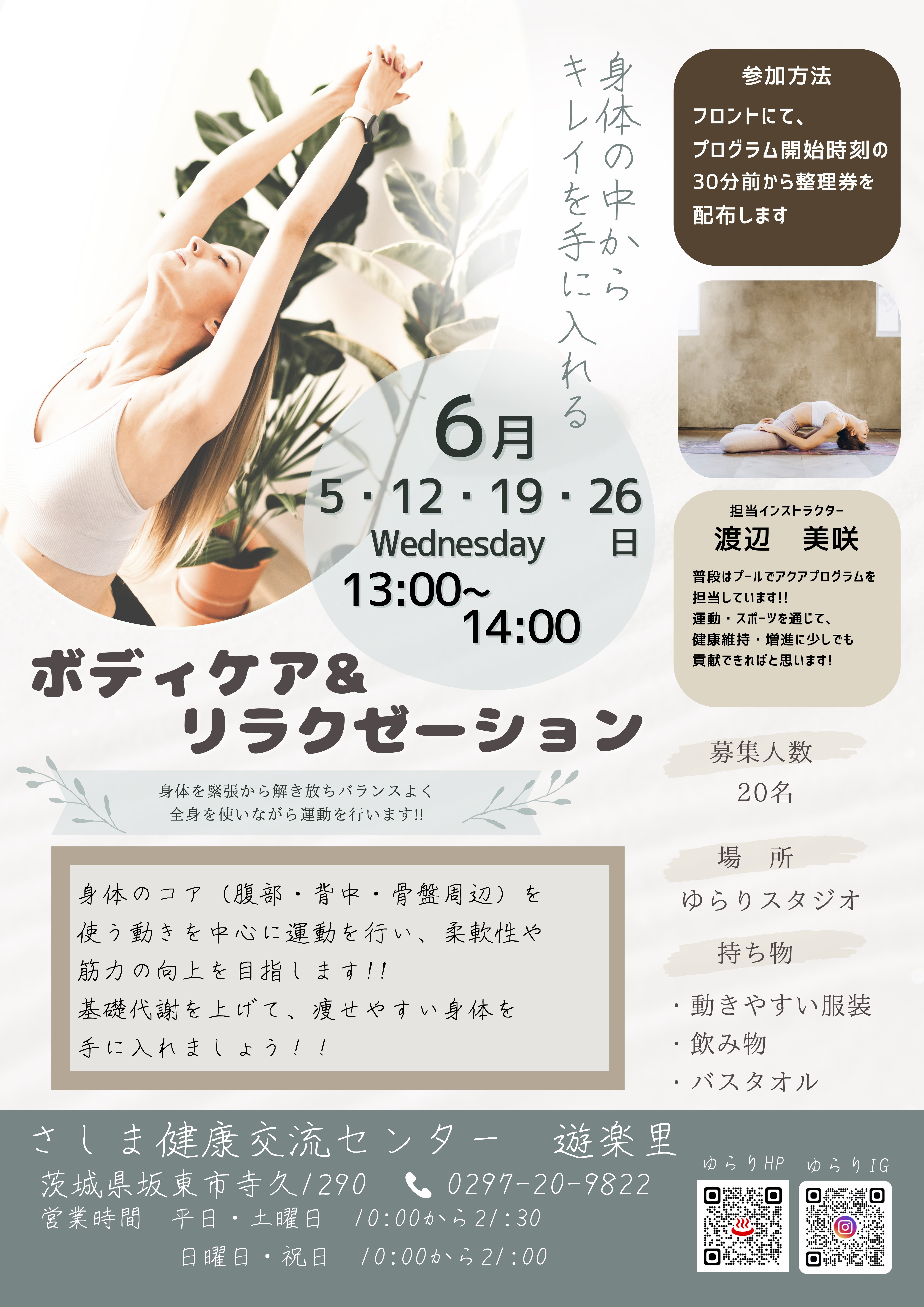6月開催「ボディケア・リラクゼーション」のお知らせ