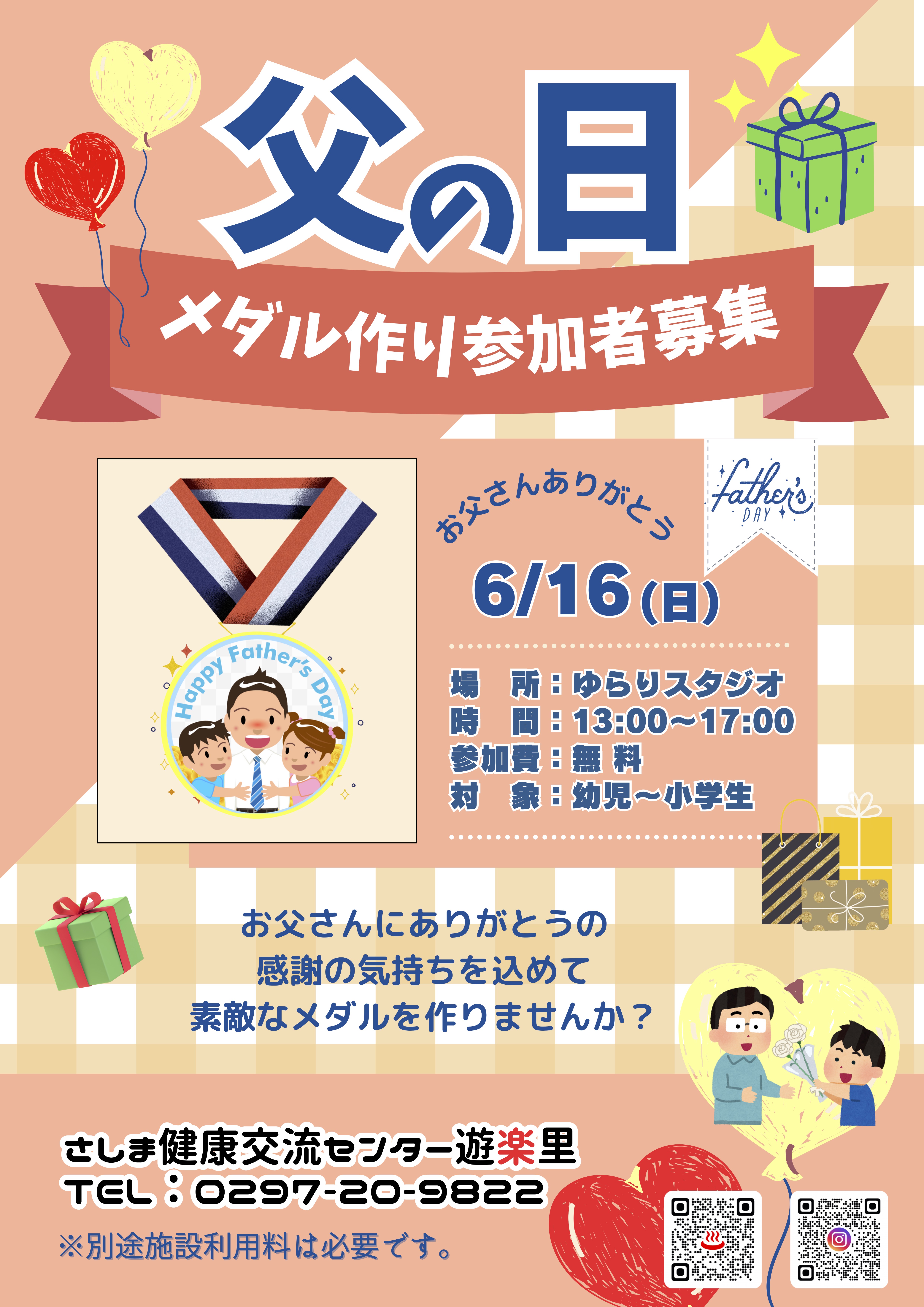6/16(日)父の日限定企画「父の日メダル作り教室」のお知らせ