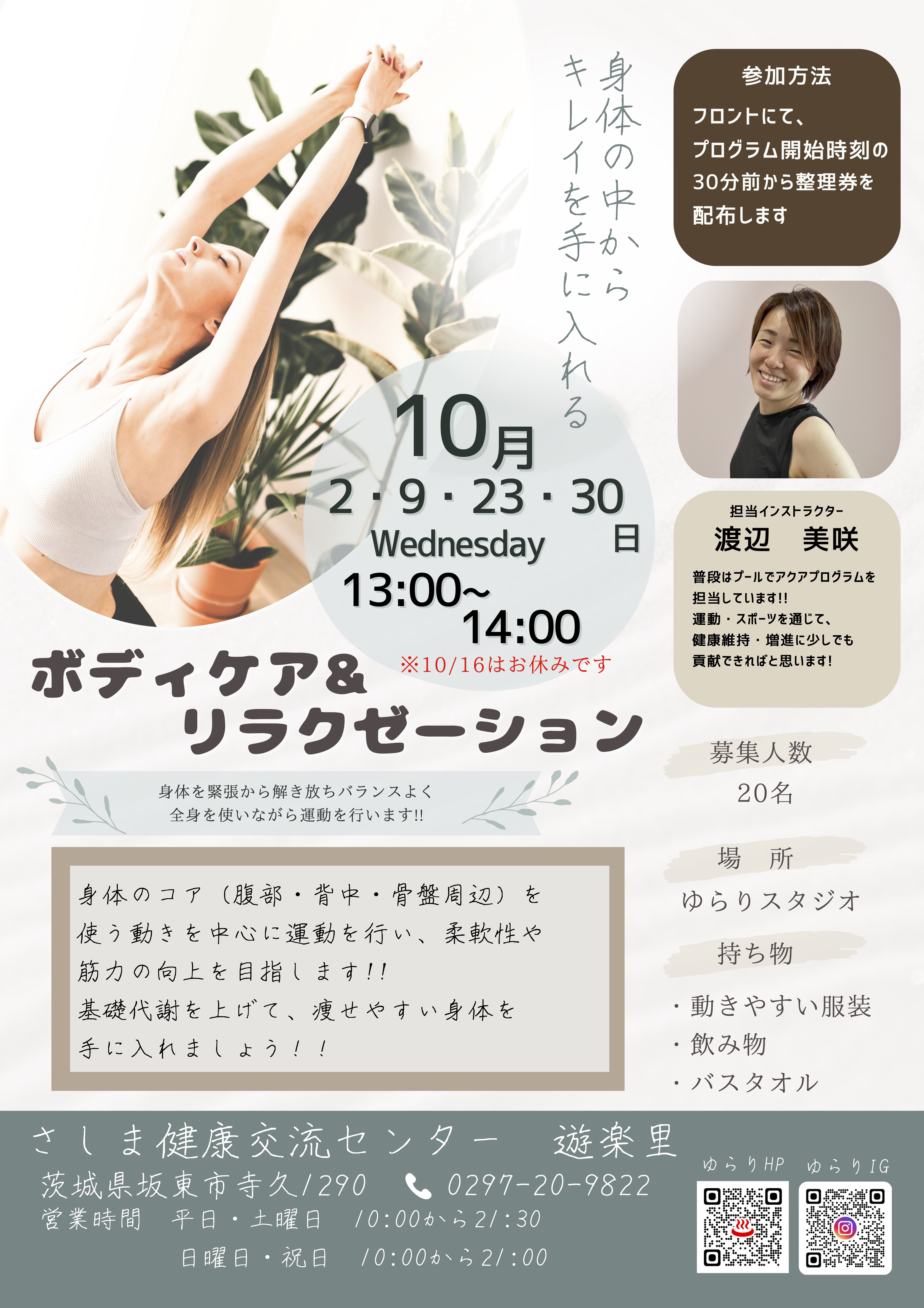 10月開催「ボディケア・リラクゼーション」のお知らせ
