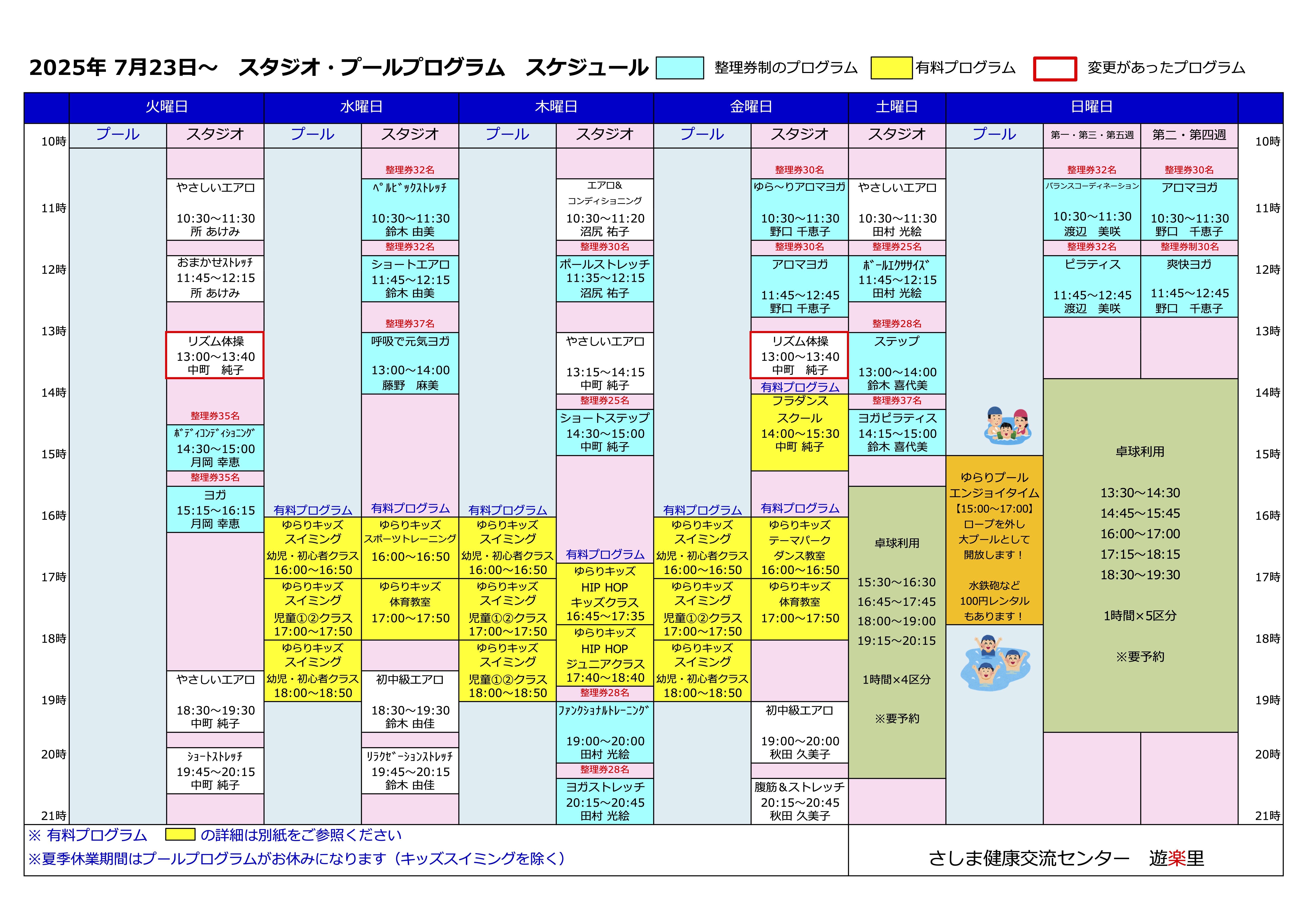 2025年7月23日(水)〜スタジオ・プールプログラム