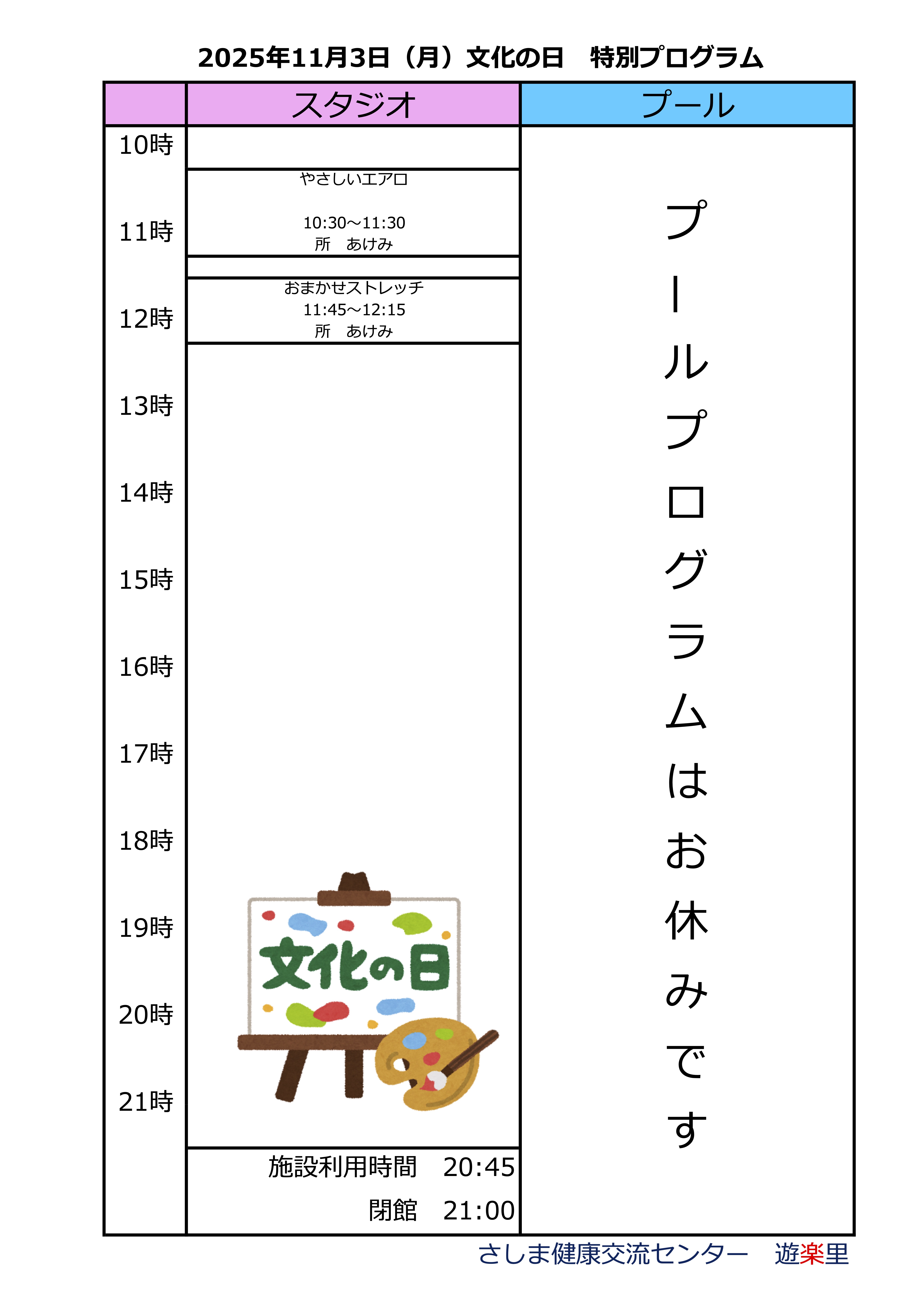 2025年11月3日(月)文化の日の特別プログラムとなります。 変更になっているプログラムがございますので、ご確認のうえご参加ください。