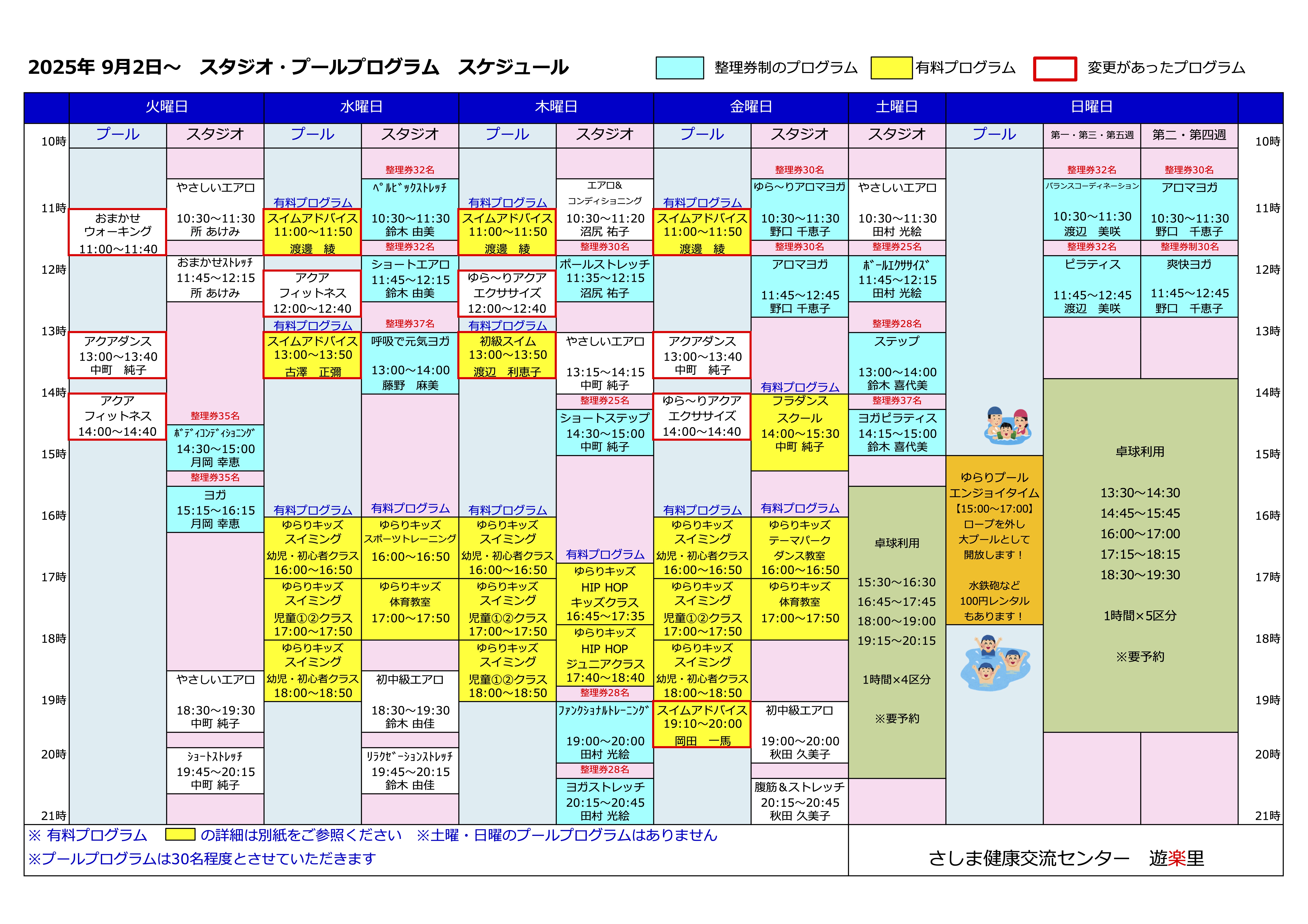 2025年9月3日(水)からのスタジオ・プールプログラムのご案内です。 変更になっているプログラムがございます。 ご確認のうえ、ご参加ください。